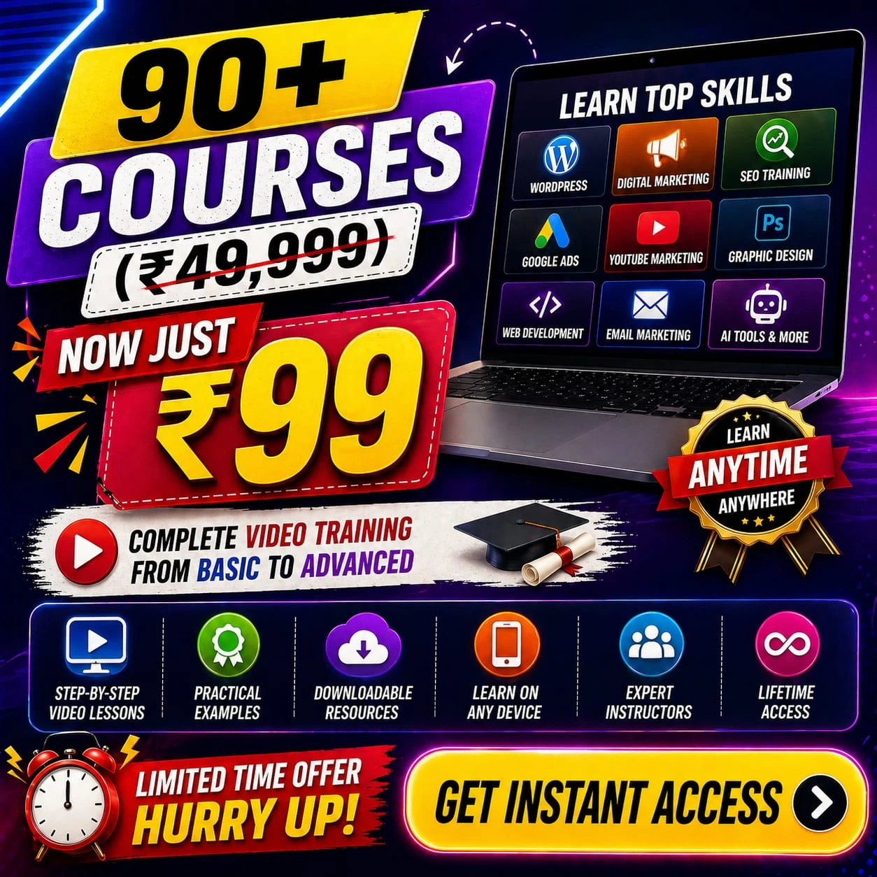 100+ video courses on WordPress, SEO, Facebook Ads, Google Ads, Graphic Design, and more — in Bangla, Hindi & English. Perfect for students, freelancers, and business owners.
